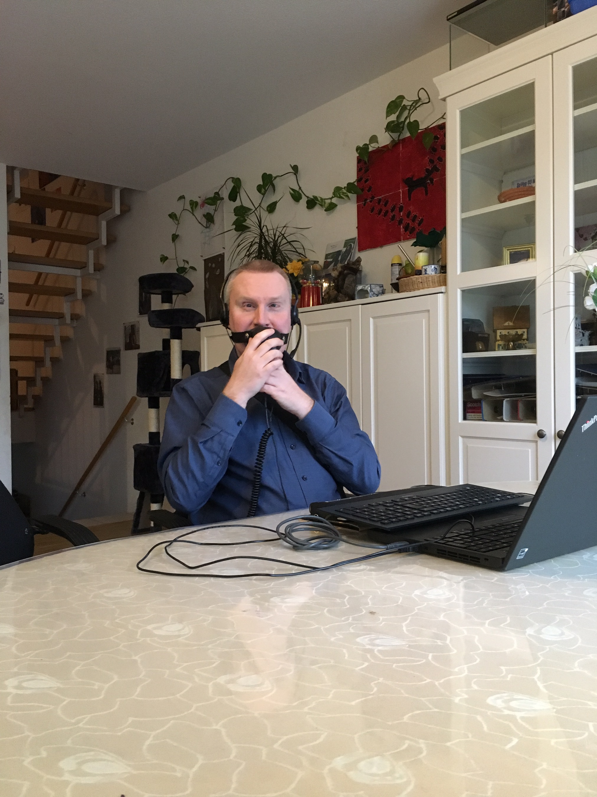 Stefan Müller: Nein, da kann ich beruhigen. Für Präsenzeinsätze gibt es eine spezielle Sprechmaske, auch Stenomaske genannt. Dabei handelt es sich um eine Gesichtsmaske mit einem hochempfindlichen Mikrofon. Diese Maske kann man sich auch als eine mobile Kabine vorstellen, die den Sprechschall nach außen abschirmt. Zuhause benutze ich ein herkömmliches Headset mit Mikrofon.
