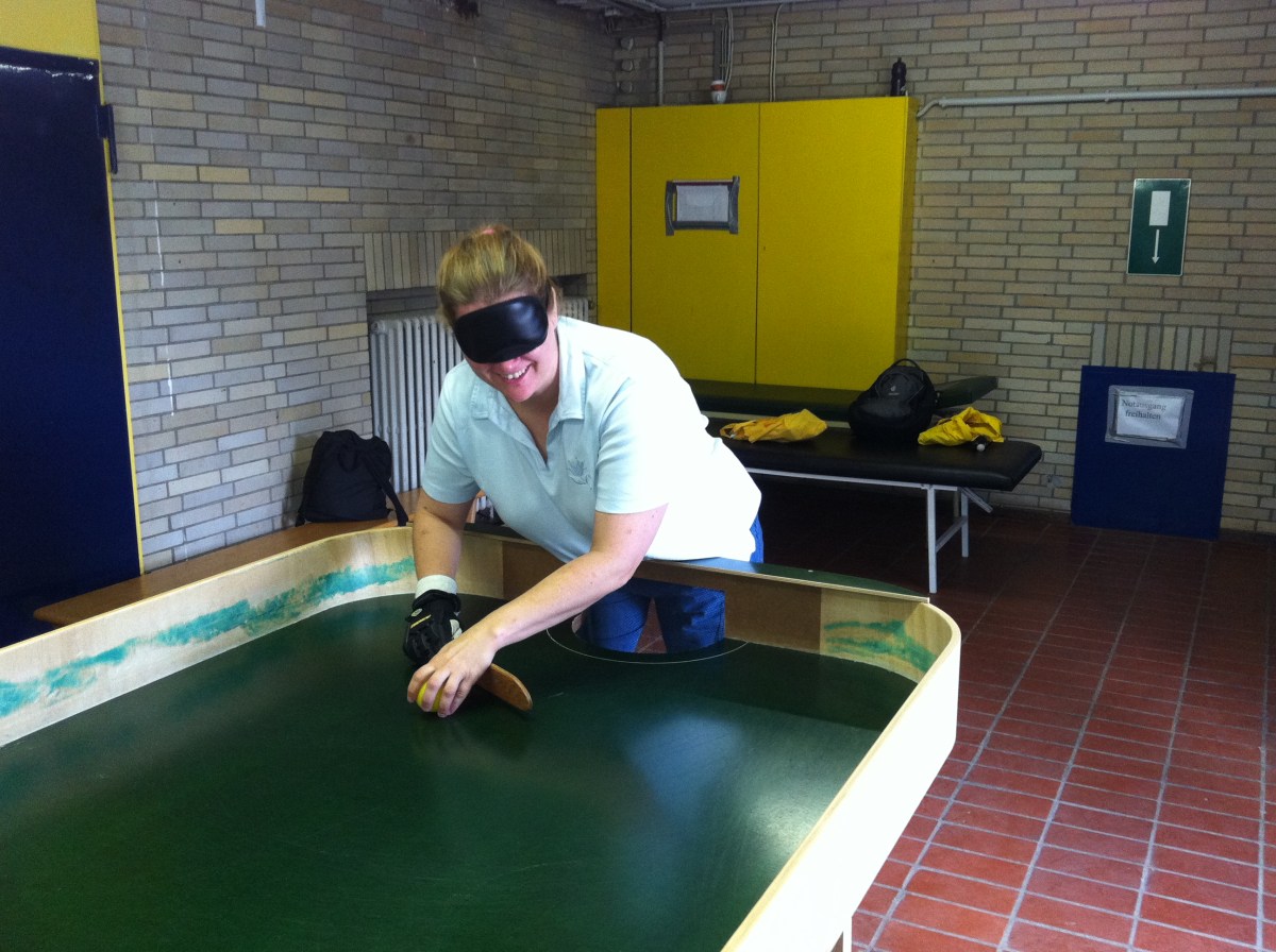 Seit Sommer 2017 habe ich Showdown für mich entdeckt. Das ist eine Inklusive Sportart, die sowohl von Blinden als auch Sehenden Spielern gespielt werden kann. Showdown wird ausschließlich nach Gehör mit einem akustischen Ball gespielt. In meinem Beitrag „Showdown, Sport für blinde und Sehende“ erkläre ich wie das geht.